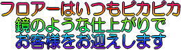 床が美しく輝いているとお店全体が明るくなり、 お客様に与える印象が良くなります。 特に女性のお客様は美しい店舗を選んでいます。 定期的なプロのケアと簡単デイリーケアにより、 輝く床を維持していただくことが可能になります。 |